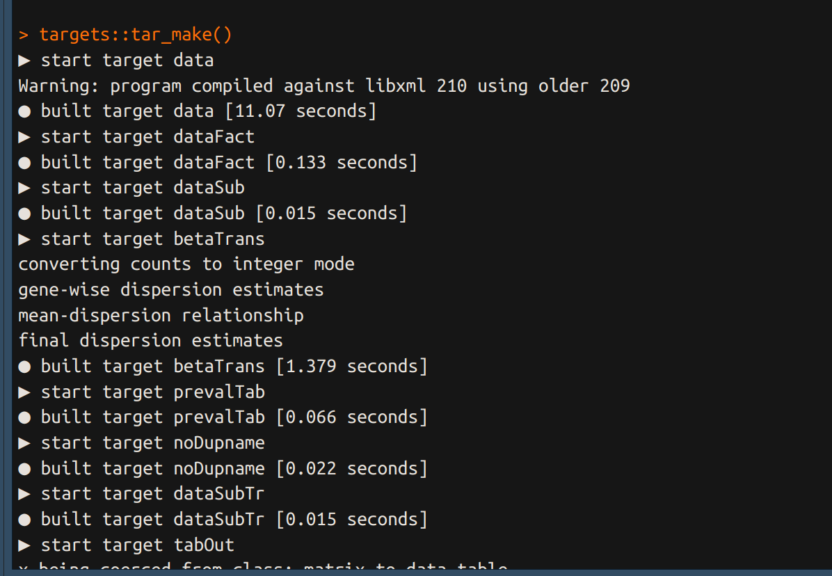 La fonction tar_make() exécute le pipeline dans son ensemble en respectant l’ordre des étapes écrites dans le fichier _targets.R.