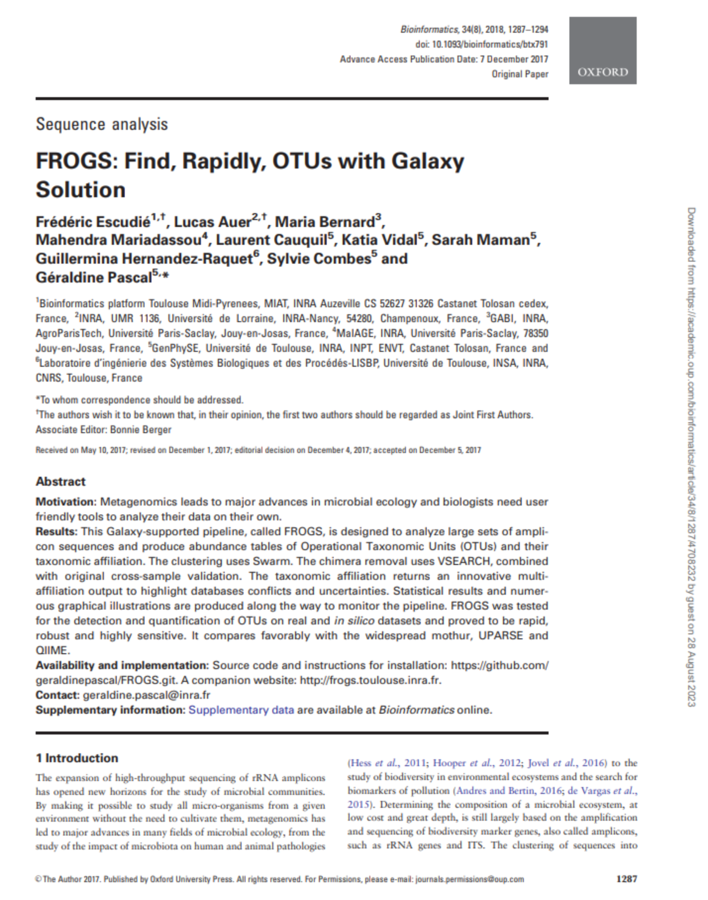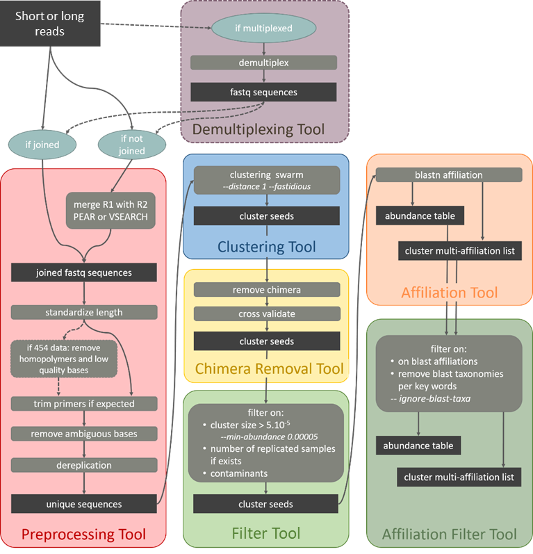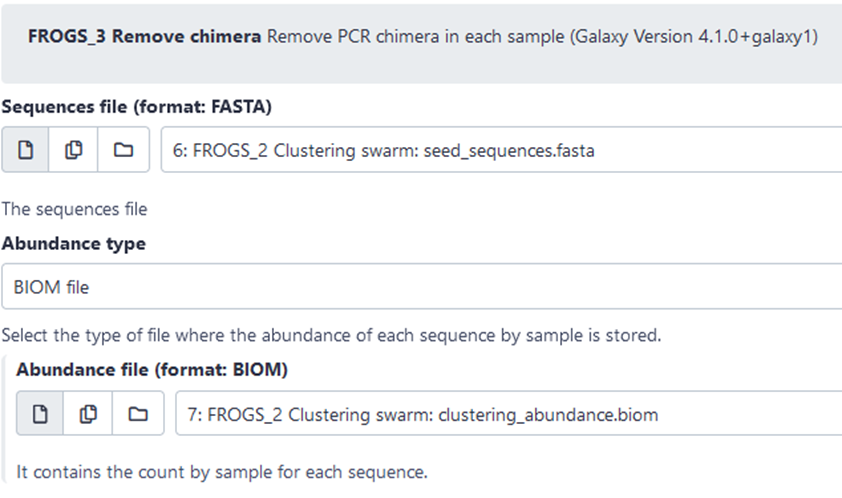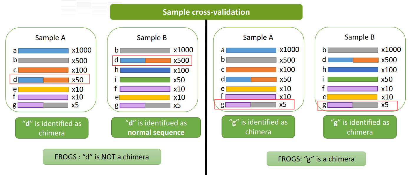 FROGS uses vsearch Rognes et al. (2016) as chimera removal tool